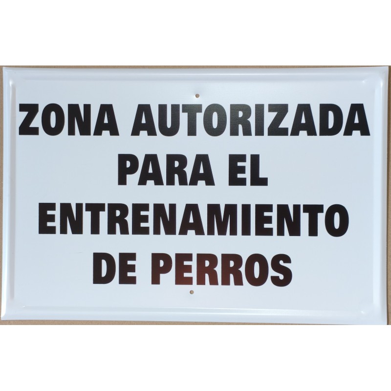 Tablilla de señalización de ZONA AUTORIZADA PARA EL ENTRENAMIENTO DE PERROS, modelo C-166.